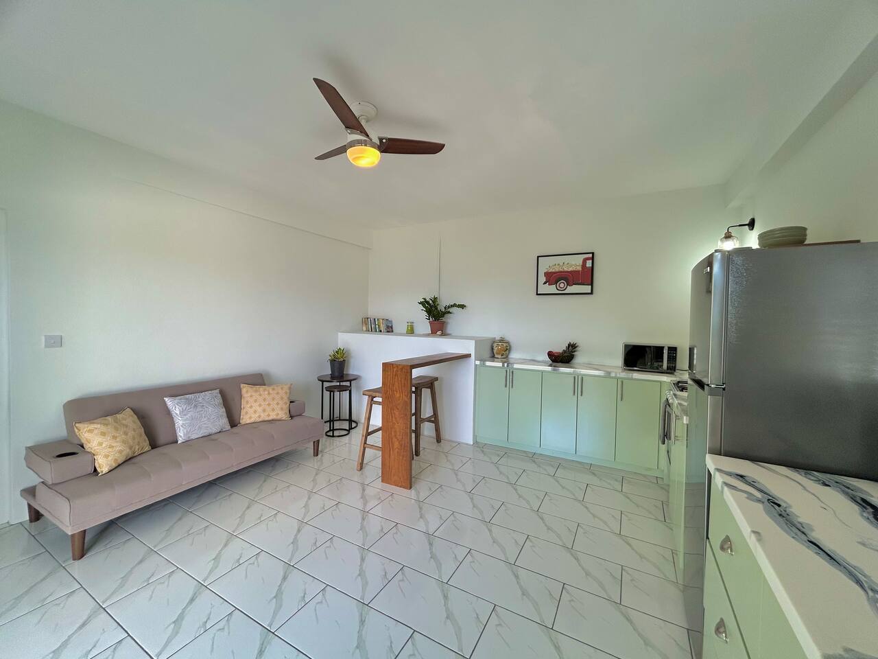 Welcome to Oleander, our Peaceful Island Getaway Tucked away in a quiet corner of Bequia, Oleander offers a cozy, comfortable space just a 20-minute walk from the heart of town. It’s the ideal stay for couples, solo travelers, or digital nomads looking for comfort, convenience, and that easy island rhythm. What You’ll Love: Prime Location: Only 20 minutes from shops, restaurants, and beaches. Air Conditioning: Stay cool and relaxed throughout your stay. Private Parking: Enjoy easy, secure parking right on-site. Flexible Stays: One-night stays welcome, perfect for short visits or weekend escapes. Private pool Exclusive Perks with Hazell Holidays: Mule Rentals: Cruise the island in style with our convenient mule rentals, ideal for exploring Bequia’s hills and beaches. Boat Charters: Set out on a private charter to Mustique, Tobago Cays, or hidden Bequia coves, custom trips available on request. Amenities: Fully equipped kitchen Private pool Smart TV Private entrance Spacious living and dining area Free WiFi Outdoor seating area surrounded by tropical greenery, and stunning view of the Harbor Whether you’re spending the day out on the water, exploring the island by mule, or simply relaxing in your cozy apartment, Oleander is your perfect home base in Bequia.